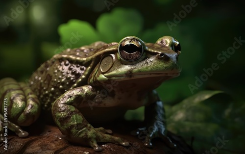 A frog or toad sits in a jungle background rainforest frog Generative AI