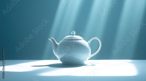 shot, white, tea, kettle, surface, illuminated, soft, diffused, light, highlight, clean, line