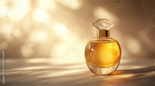 A frosted glass bottle of facial oil with golden liquid inside, styled elegantly on a neutral background, 8k, realistic, full ultra HD, high resolution, cinematic photography
