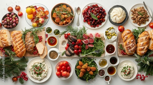 A full Christmas dinner spread with all the trimmings, isolated on white