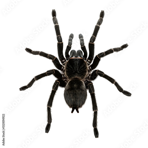 A furry tarantula spider with detailed legs on a transparent background.