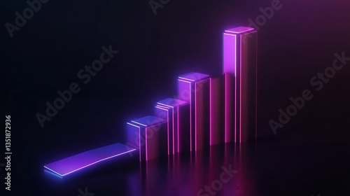 chart, bar, graph, diagram, datum, visualisation, statistic, growth, progress, finance, illustration, render, neon, purple, glow, three-dimensional, dark, background, presentation, information, business, modern, digital, technology, futuristic, geometric, concept, block, analysis, development, increase, marketing, economic, report, abstract, infographic, trend, upward, performance, display, showing, plan, result