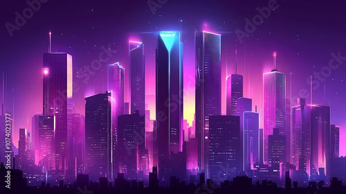 futuristic, city landscape, night, illuminated, neon, light, skyscraper, purple, hue, vibrant, energy, aesthetic, city, skyline, building, urban, vector, architecture, sky, illustration, silhouette, town, skyscraper, light, moon, design, business, building, downtown, landscape, art, scene, star, new, travel