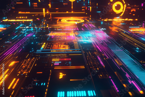 futuristic, colourful, abstract, background, glowing, holographic, digital, panel, bright, cyan, rich, magenta, gold, orange, create, high technology, visually, atmosphere