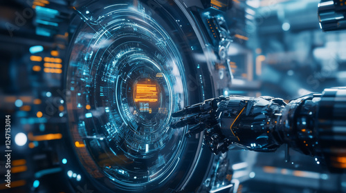 A futuristic concept showcasing a robotic arm encircled by technological elements, symbolizing AI innovation, digital connectivity, and advancements in electronic engineering