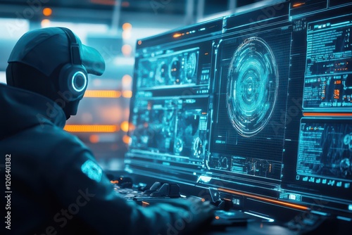 futuristic, control, room, fill, holographic, display, operator, sleek, uniform, equipment, coordination, environment, performance, perspective, intelligence, engagement, sensation, dynamic, technology, impact, mission, innovation, matrix, dashboard, energy, simulation, visual, kinetic, aesthetic, projection, virtual, concept, interface, artistry, surveillance, atmosphere, realism, interaction, monitor