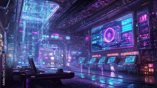futuristic, technology, control, room, neon, light, screen, digital, interface, datum, design, cyber, environment, science, innovation, architecture, vibrant, holographic, machinery, workspace, system, network, programming, interactive, modern, aesthetic, visualisation, gaming, simulation, electronic, layout, equipment, monitor, automation, software, engineering, connectivity, ambience, virtual, illumination, atmosphere, dynamic, robotic
