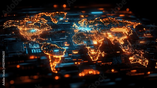 electronic, global, market, digital, technology, futuristic, light, effect, globe, network, innovation, system, connectivity, international, advanced, circuit, industry, trade, cyber, datum, computer, space, science, concept, texture, mathematic, number, cyberspace, cyberspace, effect, fractal, pattern, arrangement, fire, element, illustration, design, black, coded, theory