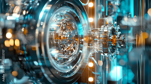 A futuristic, high-tech machinery design showcasing intricate metallic components and glowing elements, creating a visually striking effect.