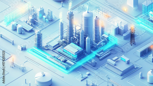 factory, infrastructure, complex, industrial, technology, futuristic, graphic, manufacturing, three-dimensional, illustration, industry, modern, design, isometric, architecture, building, plant, engineering, machinery, model, production, energy, abstract, digital, automation, development, network, perspective, power, geometric, pipe, pipeline, white, construction, equipment, detailed, future, image, innovation, process, progress, refinery, structure, system, visual, rendering, tower, art, chimney