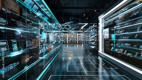 futuristic, retail, environment, integrated, digital, screen, smart, technology, illustrating, concept, business, computer, building, cyberspace, market, datum, stock, office, design, night, web, supermarket, code, warehouse, information, light, display, architecture, video, music, media, store, train, station, interior, railway, bridge, construction, transportation, subway, industrial, city, steel, corridor, floor, urban, structure