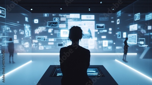 futuristic, blackboard, where, gleaming, smart, device, float, digital, ether, interconnected, glowing, datum, holographic, tech, symbol, orbit, central, evacuated, offer, space, explanatory, text, visually, striking, scene, seamless, integration, technology, our, daily, live