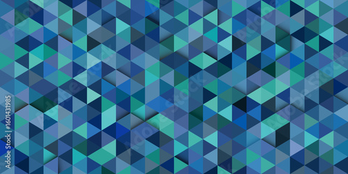 A geometric pattern of triangles in blue-green hues creates a sense of depth and volume. Abstract background for paper packaging, covers and branding.
