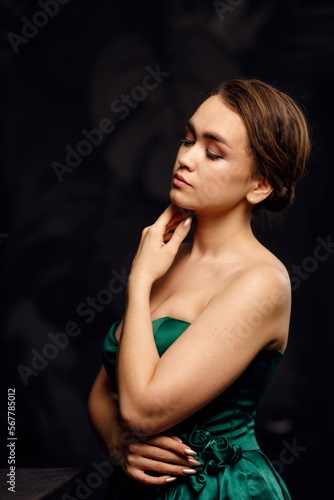 graceful, sensuality, charme, romantic, photo studio, vintage, beautiful, dress, young, fashion, style, lady, girl, model, fire, white, beauty, woman, studio, pretty, pose, attractive, caucasian, photo, background, face, portrait, green, elegant, hair, red, body, make-up