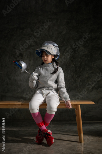 portrait, epee, sport, weapon, sword, knight, exercise, girl, bench, children, combat, children, aim, asian, athlete, athletic, attack, battle, blade, competition, equipment, indexed, fence, fencer, fight, foil, game, gym, gear, glove, guard, helmet, hilt, lunge, mask, metallic, outfit, play, practicing, protective, ready, shield, shoe, skill, steel, training, vitality, sitting