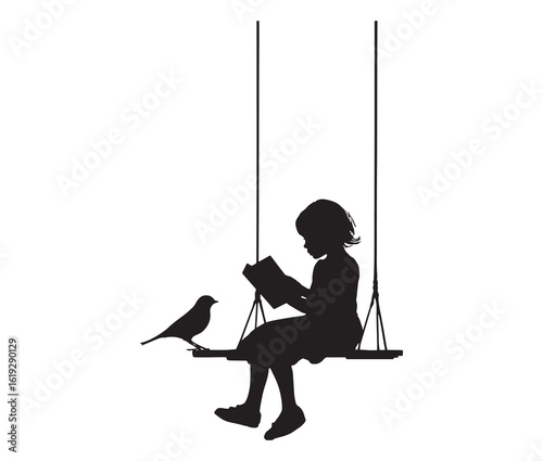 A girl sitting on the swing reading silhouette.