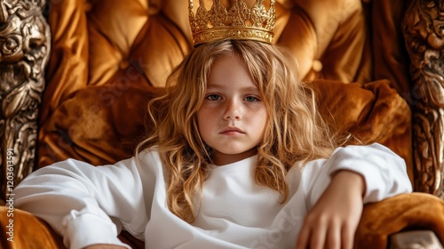 girl, crown, throne, elegance, charme, modern, portrait, gold, fashion, innocence, youth, emotion, joy, playful, beauty, royalty, cosy, style, children, happiness, majesty, serenity, creativity, warmth, power, enchanting, artistic, luxury, children, family, culture, youthful, splendid, adorable, serene, delightful, chic, relaxed, vibrant, innocent, imagination, friendly, children