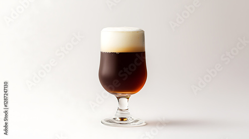 A glass of beer is sitting on a white background