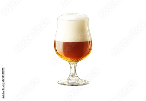A glass of beer with foam, isolated on a white background