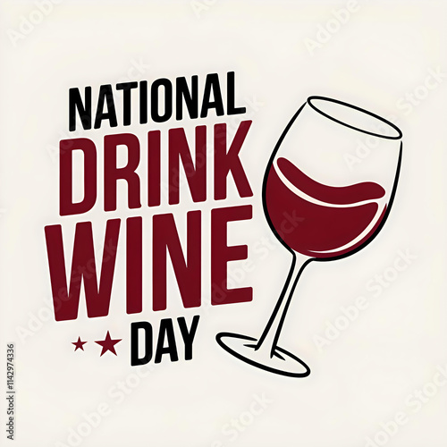 A glass of red wine with the text "NATIONAL DRINK WINE DAY" on a light background