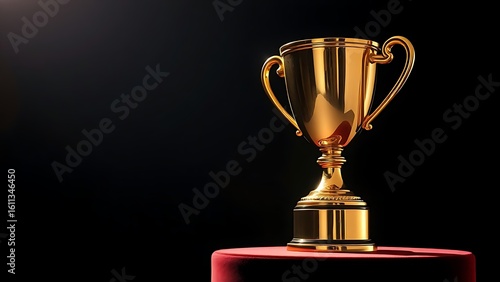 A gleaming gold trophy displayed on a velvet pedestal, capturing achievement and prestige.