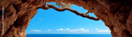 A Glimpse of Freedom: A mesmerizing view of the vast blue ocean unfolds through a natural archway, hinting at the expansive beauty and liberation that lies beyond.