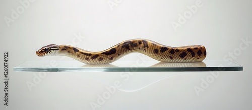 snake, model, elongated, glossy, brown, black, spot, acrylic, footed, illuminated, white, background, animal, reptile, decor, exhibit, display, artistic, nature, realism, sculpture, design, studio, realistic, texture, pattern, fauna, creative, craftsmanship, minimalism, shadow, light, colours, unique, contemporary, exhibition, product, photo, closeup, detail, visual, aesthetic, home, collectable, stunning, vibrant