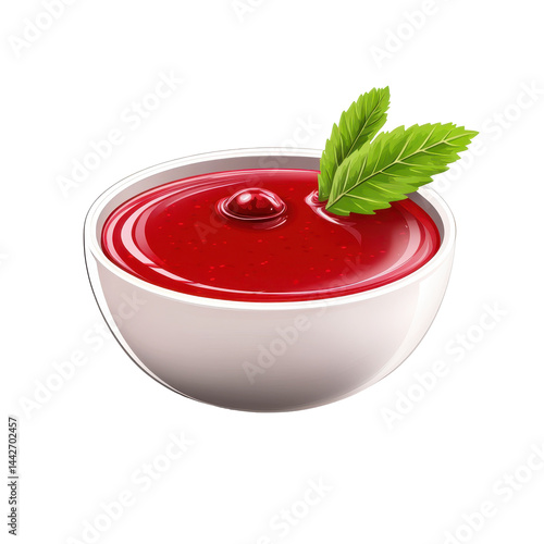 sauce, red, bowl, white, dish, food, liquid, condiment, topping, mint, leaf, garnish, healthy, delicious, tasty, sweet, spicey, smooth, vibrant, colours, blood-red, fruit, vegetable, juicy, flavorful, appetising, smoothie, drink, soup, jam, jelly, tomatoes, cherry, berry, deliciously, nourishment, vegan, vegetarian, isolated, image, illustration, digital