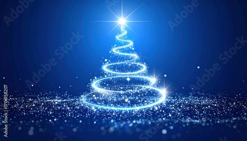 holiday, christmas, tree, blue, glow, light, spiral, star, bright, festive, celebration, winter, season, december, sparkle, glistering, bokeh, abstract, background, design, ornament, decoration, magic, elegant, graceful, symbolic, modern, simple, artistic, beautiful, creative, fantasy, dreamy, shiny, radiant, shimmer, particle, illuminated, energy, joyful, surprise, wishing, hope, wonder, delight, happy