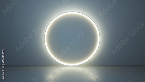 neon, glowing, circle, frame, light, ring, empty, wall, modern, minimalist, light bulb, illuminated, circular, empty space, abstract, design, contemporary, future, futuristic, art, shape, illumination, oval, bright, white, studio, grey, smooth, neutral, blank, floor, concrete, interior, three-dimensional, rendering, graphic, digital, image, illuminating, blank space, geometric