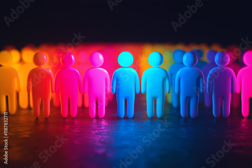 A glowing classroom scene with diverse digital figures, symbolizing inclusive education