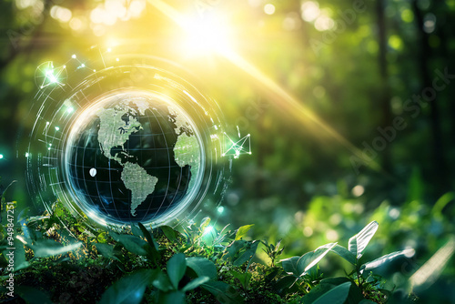 greenery, glowing, nature, technology, environmentally friendly, future, environment, sustainability, planet, digital, green, globe, sunlight, bright, connection, forest, earth, sustainable, environmental protection, natural, futuristic, innovation, planet earth, green energy, light, illustration, sun, global