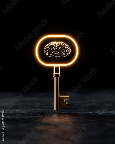A glowing key symbolizing the unlocking of knowledge, wisdom, and creativity represented by a brain design.