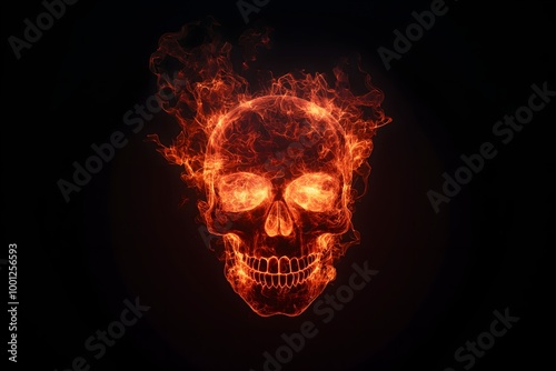A glowing skull made of flames, set against a dark background, creating an eerie yet captivating visual.