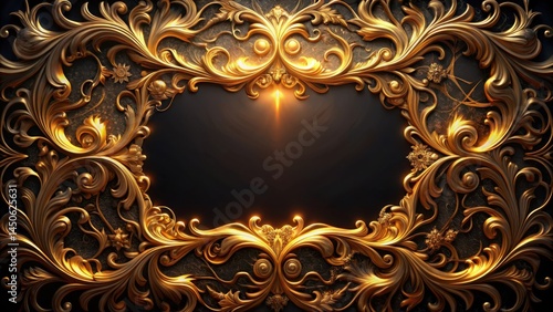 ornate, frame, gold, decorative, gold, baroque, rococo, vintage, luxury, elegant, intricate, design, gilded, flourish, embellishment, scrollwork, border, background, black, dark background