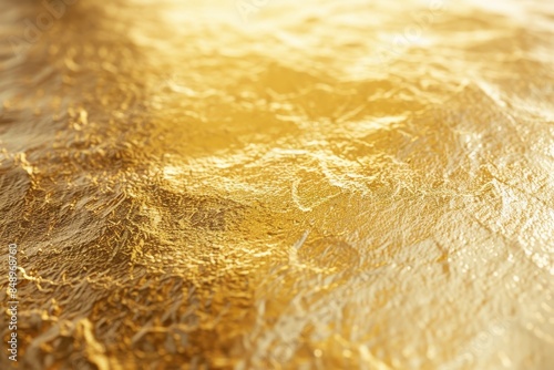 A gold surface with a rough texture. The gold is shiny and reflective. The surface is textured and has a metallic sheen