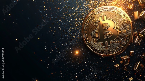 A golden Bitcoin coin sparkles against a black background, symbolizing the allure of cryptocurrency.
