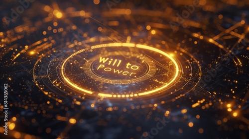 A golden circle with the words "Will to Power," embodying Nietzsche's concept of the driving force behind human actions