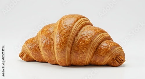 A golden croissant with a flaky texture displayed on a clean white background.