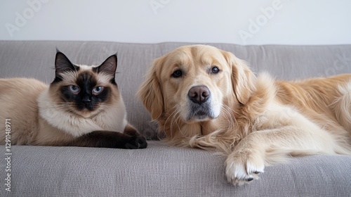pet, animal, gold, retriever, siamese, bond, warmth, serene, calmness, affection, togetherness, harmony, playful, joyful, furry, couch, peaceful, cuddle, canino, social, paw, friendship, fur, relaxation, together, resting, felino, comfort, companionship, cosy, adorable, happiness, loyalty, habitat, sitting, cat, love, breed, family, charming, domestic, home, cute, lifestyle, nature