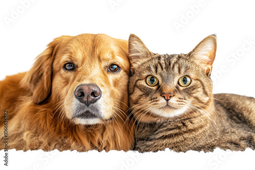 dog, cat, gold, retriever, tabby, lying, together, isolated, transparent, pet, animal, friendship, furry, companion, domestic, love, cute, cosy, bond, relaxed, pet, fur, adorable, closeup, family