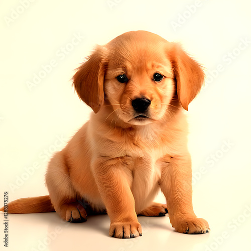 A golden retriever puppy sitting on a pure white background, Generative AI