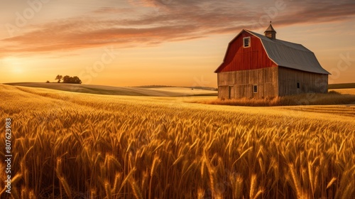 a golden wheat field, bathed in the warm glow of the setting sun,
