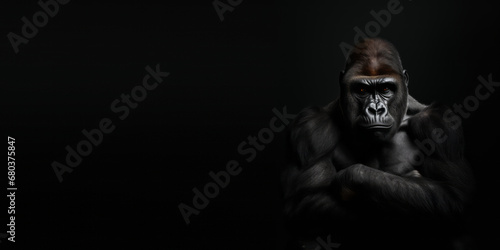 gorilla, black background, minimalistic, stylish, body, muscular, dark, model, black, strong