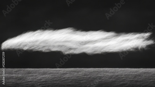 A graceful, wispy cloud stretches across a dark sky, creating a striking contrast and evoking a sense of tranquility.
