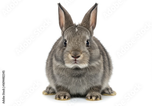rabbit, animal, grey, fur, pet, cute, fluffy, adorable, mammal, portrait, closeup, front, white, background, sharpened, attentive, expression, sitting, paw, ear, nose, detail, domestic, small, calm, peaceful, innocent, beautiful, colourful, bright, creative, modern, elegant, stylish, professional, decorative, vibrant, stunning, amazing, marvellously, fantastic, gorgeous, lovely, charming, attractive, impressive