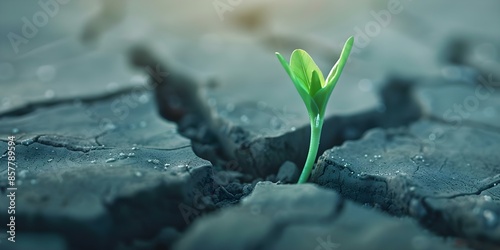 A green sprout emerges from cracked earth symbolizing new life and hope. Concept Nature, Growth, Resilience, Hope, Symbolism