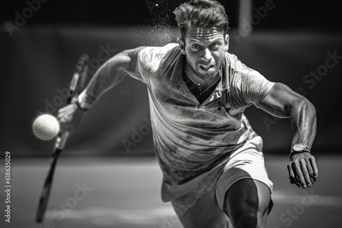 tennis, player, determination, effort, black, white, sport, game, court, action, athlete, performance, skill, strength, endurance, sharpened, power, perspiring, emotion, resilience, perseverance, challenge, passion, drive, competitive, monochrome, contrast, grit, expression