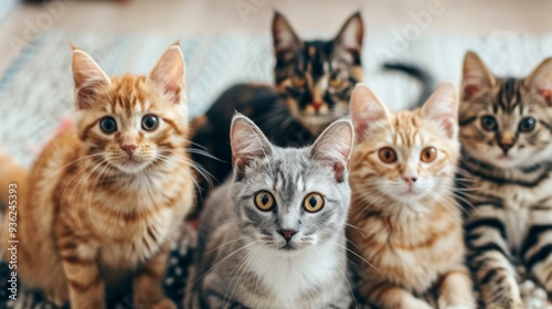 cat, group, american, short hair, various, colours, sitting, cosy, indoor, rug, kitten, animal, pet, cat, kitten, felino, domestic, pet, cute, animal, fur, cat, young, baby, mammal, black, adorable, family