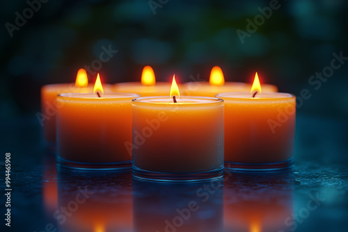 A group of candles arranged in a circle, each flame contributing to a warm, collective glow. Concept of unity.